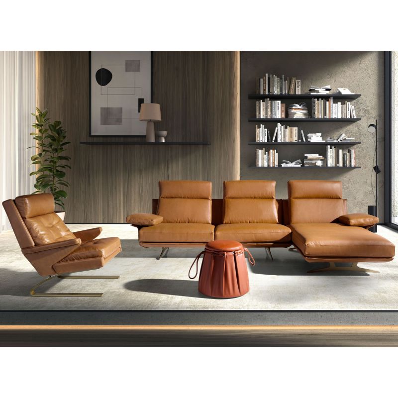 | Materiale | tapiterie din piele de vaca cu grosimea de 1,25 mm, umplutura spuma poliuretanica, otel finisaj auriu |