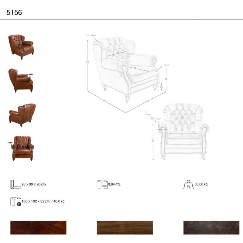 | Materiale | picioare din lemn masiv finisaj mahon, tapiterie din piele naturala de vaca, tava auxiliara pliabila |
