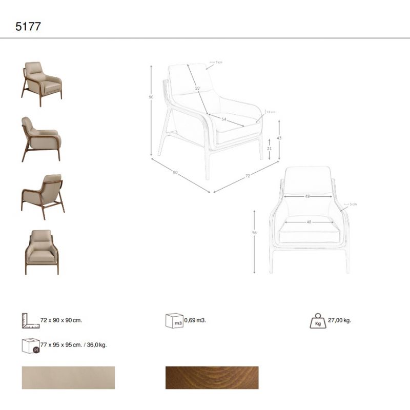 | Materiale | picioare din lemn de culoarea nucului, tapiterie piele naturala, umplutura spuma |