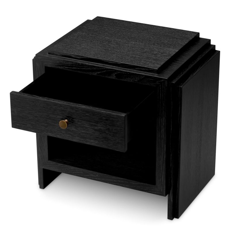Noptiera LUX Furnir Stejar Gri Carbune, ArtDeco