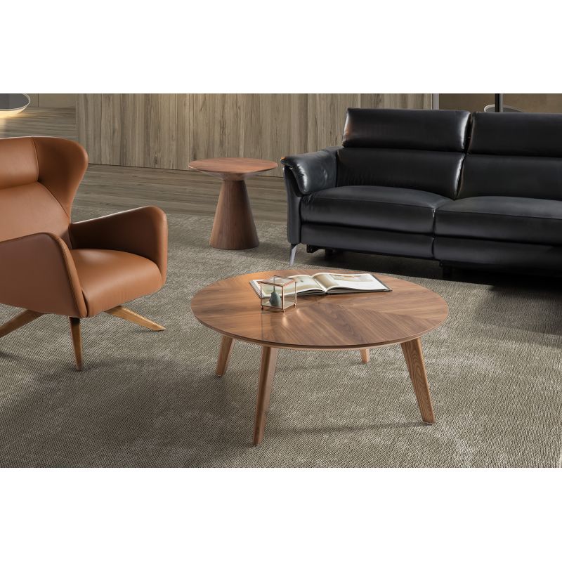 Mobilierul este realizat utilizând lemn furniruit de nuc (walnut veneer), material utilizat frecvent în designul interior datorită aspectului natural al lemnului. Furnirul de nuc este utilizat pentru realizarea meselor de dining, consolelor, mobilierului TV, birourilor și paturilor, fiind integrat în structuri cu design modern.