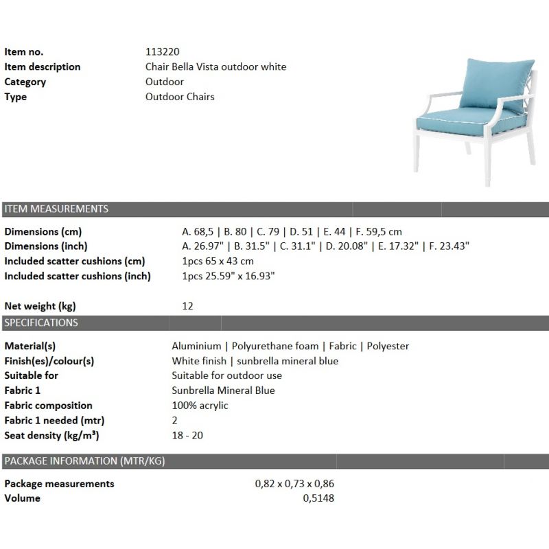 | Descriere | aluminiu finisaj alb, tesatura albastra- sunbrella mineral , spuma poliuretanica |