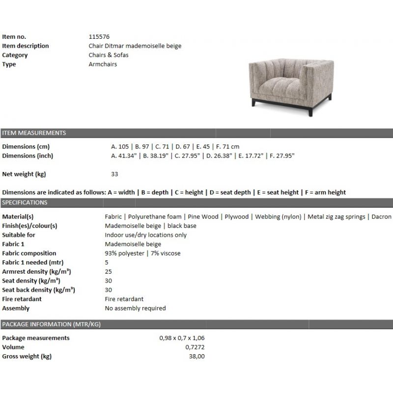 Confortul si designul se impletesc cu eleganta in forma si textura fotoliului Ditmar. Tapiteria bej alaturi de picioarele din lemn in finisaj negru, creeaza un obiect de mobilier cu linii perfecte si functionalitate optima.