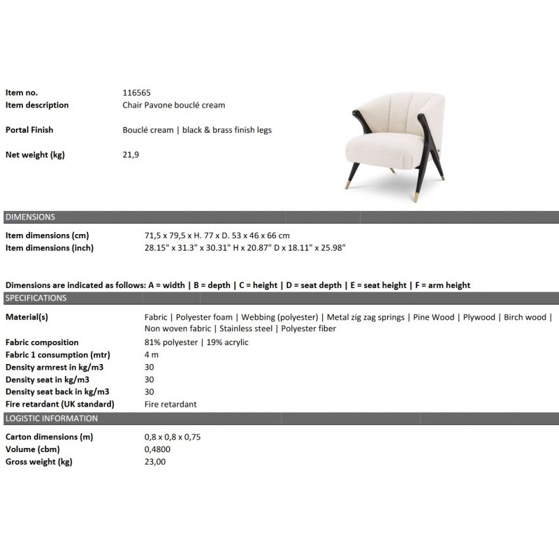 | Materiale | tapiterie boucle -81% poliester/ 19 acril, picioare din lemn de pin, lemn de mesteacan, otel inoxidabil, placaj, umplutura spuma, arcuri |