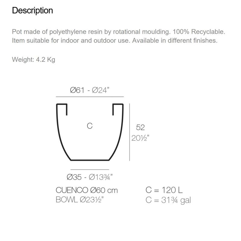 | Materiale | rășină polietilenă prin turnare rotativă, 100% reciclabil, rezistent la intemperii si raze UV, potrivit pentru utilizare în interior și exterior |