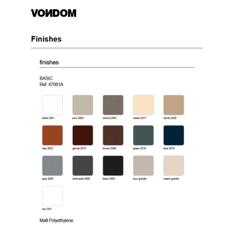 Parteneriate cu designeri internaționali – VONDOM colaborează cu arhitecți și designeri renumiți, precum Stefano Giovannoni, Ludovica + Roberto Palomba, Javier Mariscal, Karim Rashid, A-cero și Ramón Esteve, oferind piese care îmbină estetica contemporană cu funcționalitatea.