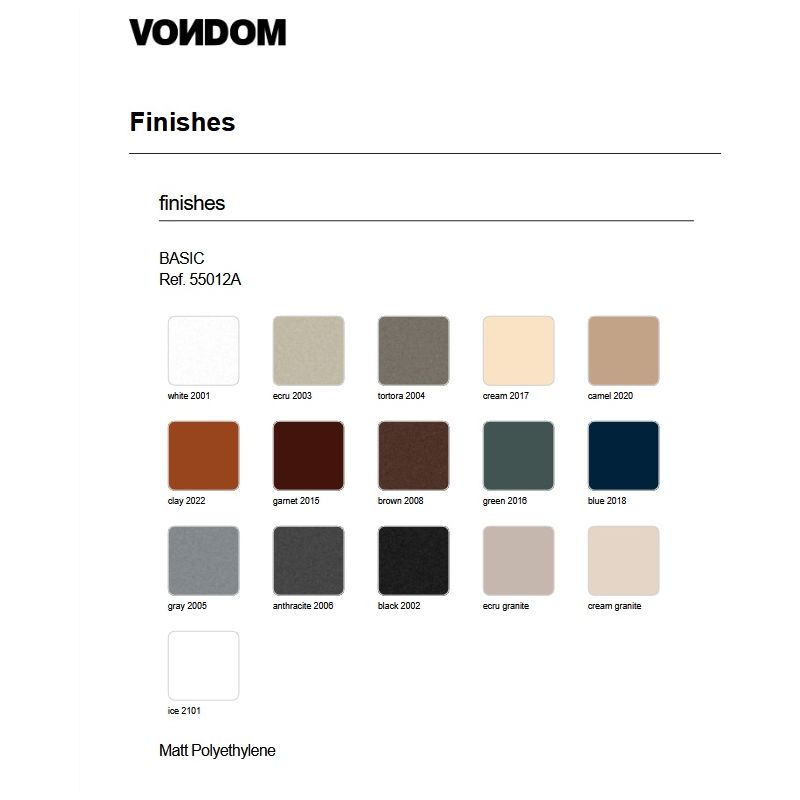 Parteneriate cu designeri internaționali – VONDOM colaborează cu arhitecți și designeri renumiți, precum Stefano Giovannoni, Ludovica + Roberto Palomba, Javier Mariscal, Karim Rashid, A-cero și Ramón Esteve, oferind piese care îmbină estetica contemporană cu funcționalitatea.