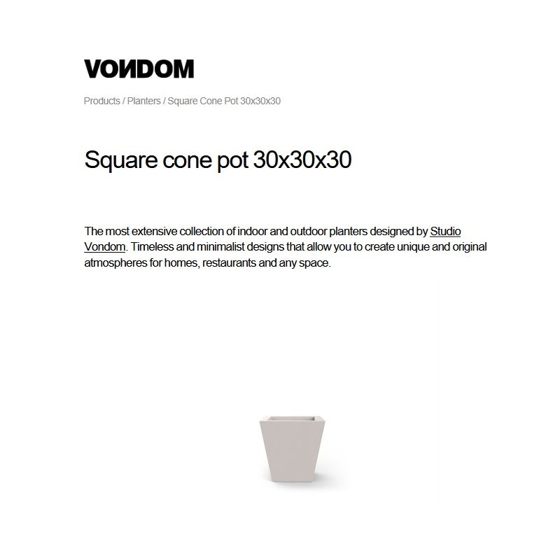 Stilul modern si simplu al ghiveciului Square Cone Pot este pentru spatiile minimaliste, cu un design contemporane. Modelul ghiveciului nu are nimic extravagant, insa inspira o eleganta sobra. Confectionat dintr-un material durabil si neted, ghiveciul Square Cone Pot este disponibil intr-o varietatea de culori pe care sa le imbinati cu spatiul dumneavoastra.