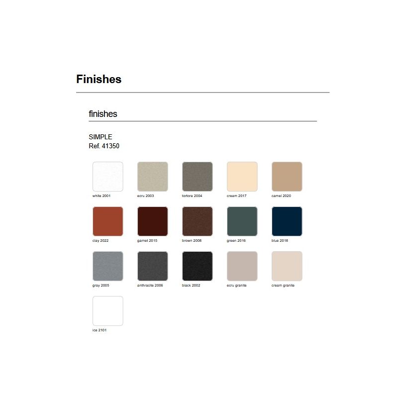 | Culoare | disponibil in mai multe finisaje de culori mate: vezi culorile in pozele de la produs, va rugam specificati culoarea la comanda |