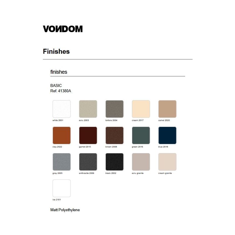 Parteneriate cu designeri internaționali – VONDOM colaborează cu arhitecți și designeri renumiți, precum Stefano Giovannoni, Ludovica + Roberto Palomba, Javier Mariscal, Karim Rashid, A-cero și Ramón Esteve, oferind piese care îmbină estetica contemporană cu funcționalitatea.