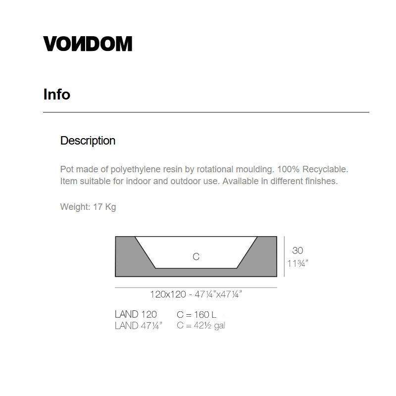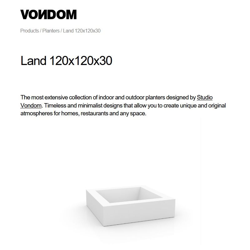 Prin design-ul sau neobisnuit, jardiniera LAND planter ofera un plus de eleganta in orice spatiu in care se gaseste. Jardiniera are un aspect somptuos indiferent de culoarea aleasa, varietatea fiind prezenta pentru a va ajuta sa potriviti ghiveciul cu spatiul dumneavoastra. Datorita rezistentei la intemperii, jardiniera LAND reprezinta o alegere favorabila pentru amenajarea curtii, a terasei sau a gradinii dumneavoastra.