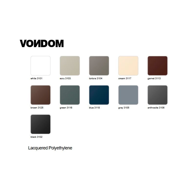 Parteneriate cu designeri internaționali – VONDOM colaborează cu arhitecți și designeri renumiți, precum Stefano Giovannoni, Ludovica + Roberto Palomba, Javier Mariscal, Karim Rashid, A-cero și Ramón Esteve, oferind piese care îmbină estetica contemporană cu funcționalitatea.