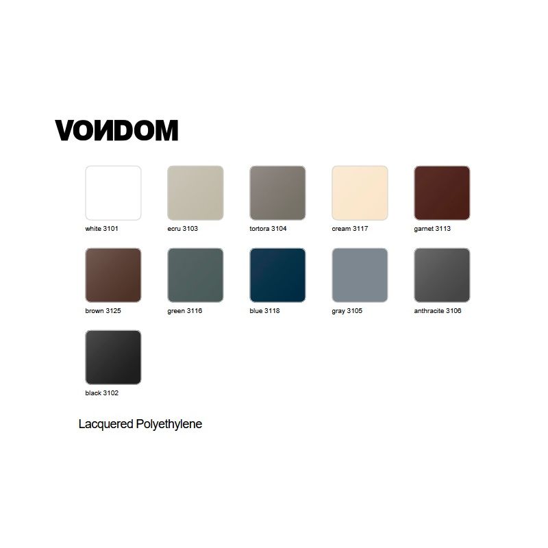 Parteneriate cu designeri internaționali – VONDOM colaborează cu arhitecți și designeri renumiți, precum Stefano Giovannoni, Ludovica + Roberto Palomba, Javier Mariscal, Karim Rashid, A-cero și Ramón Esteve, oferind piese care îmbină estetica contemporană cu funcționalitatea.