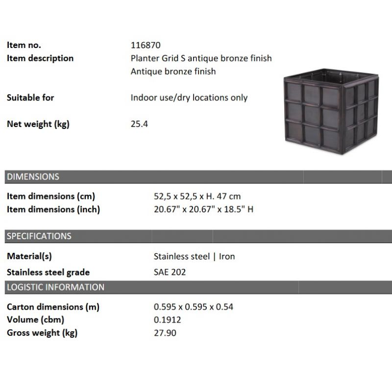 Ghiveci, Vas decorativ din otel inoxidabil Grid S bronz vintage