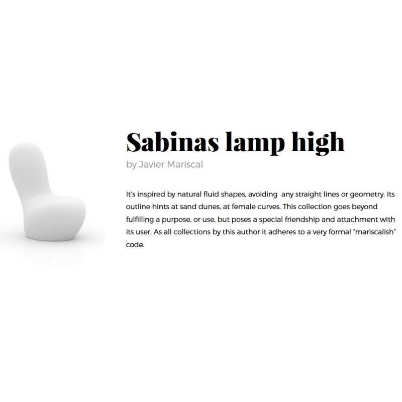 Cu o forma curgatoare in forma de scaun, corpul de iluminat Sabinas creaza o ambianta atragatoare si moderna, potrivindu-se in jurul locuintei dumneavoastra, fie in curte sau pe o terasa. Durabilitatea corpului de iluminat Sabinas high este asigurata de materialul termoplastic din care este realizat. Finisajul alb, semitransparent infrumuseteaza lampa cu LED oferindu-va o atmosfera placuta si eleganta.