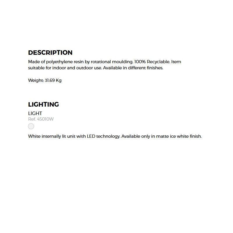 Materiale | termoplastic durabil, rezistent la intemperii si raze UV, finisaj alb mat |
