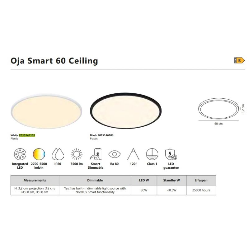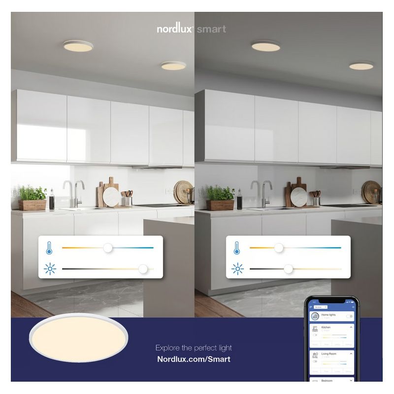 Putere | 30 Watt LED integrat 3500Lm, 2700-6500K, are conexiune Bluetooth controlul luminii de pe telefon/ tableta sau telecomanda Nordlux Smart exclusa din pret |