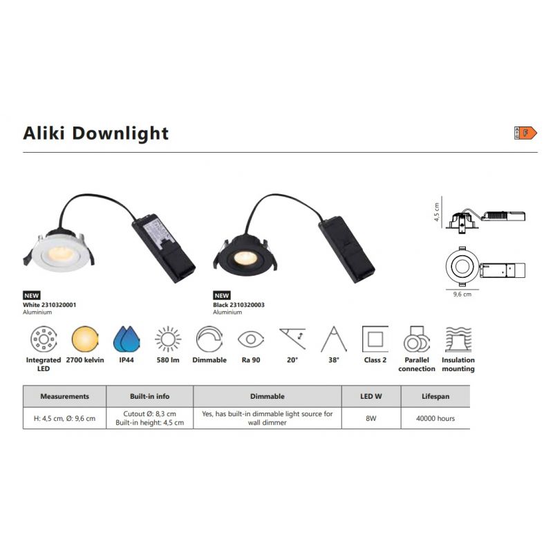 | Dimensiuni | diametru:9,6cm; inaltime:4,5cm; diametru decupaj tavan:8,3cm |