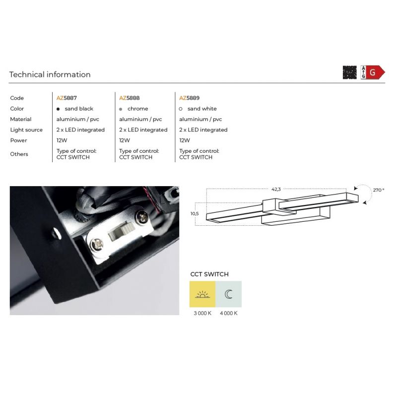 | Putere | 2x LED integrat, 12Watt, CCT SWITCH 3000K/4000K, inclus in pret |