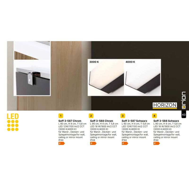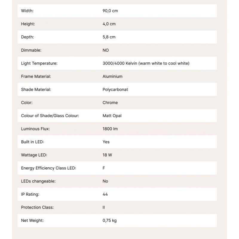 | Informatii produs: | lampa LED cu protectie la umiditate IP44, CCT integrat, puteti regla individual culoarea luminii între alb cald 3000K si alb neutru 4000K |