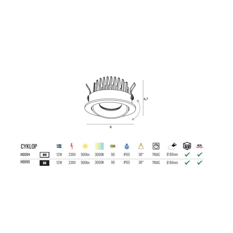 | Informatii produs: | spot LED directionabil cu protectie la umiditate IP65 |