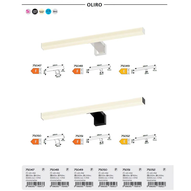 | Putere | 4 Watt LED integrat, 350Lm, 4000K |