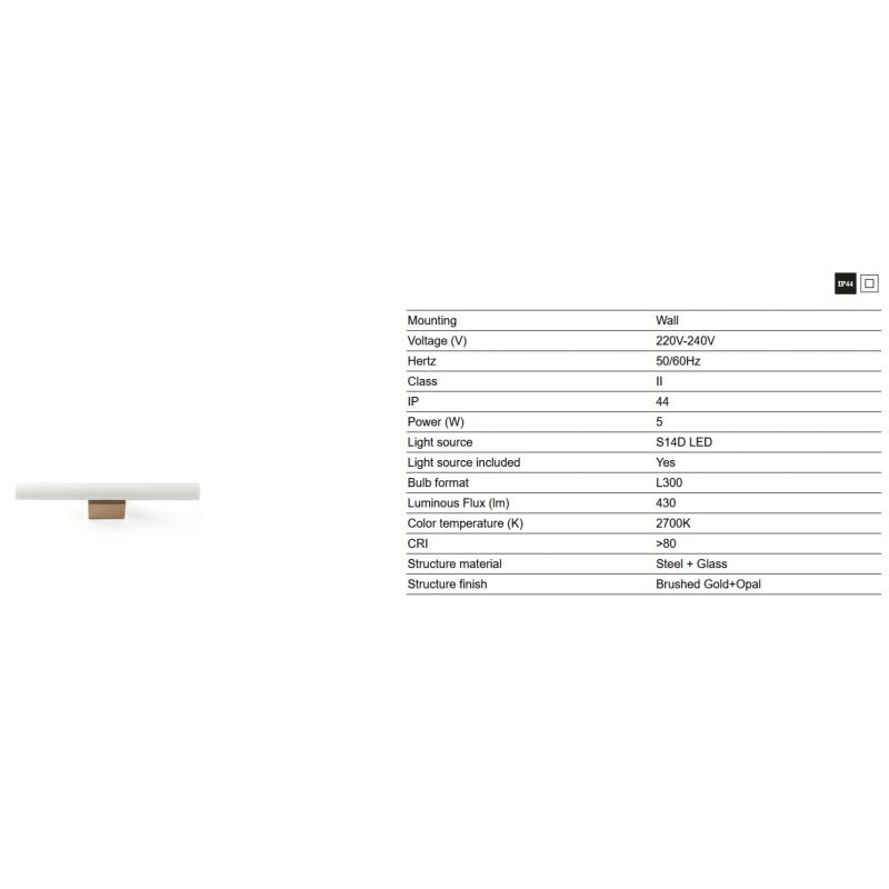 | Materiale | otel finisaj auriu, sticla alb opal |