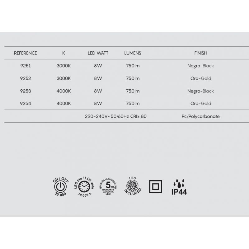 | Putere | 8 Watt LED integrat 750Lm, 3000K |