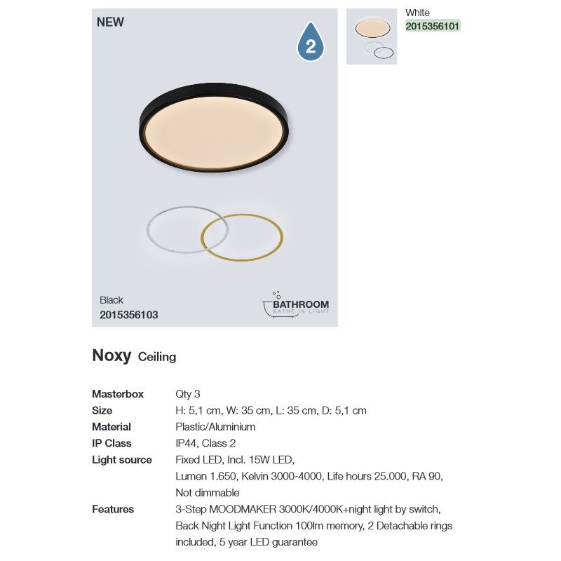 Noxy este o lampa de plafon minimalista cu LED integrat și functia Moodmaker SceneSelect în 3 trepte, care este acționata de întrerupatorul standard de perete si va ofera o opțiune de lumina de noapte care direcționeaza lumina doar către tavan.