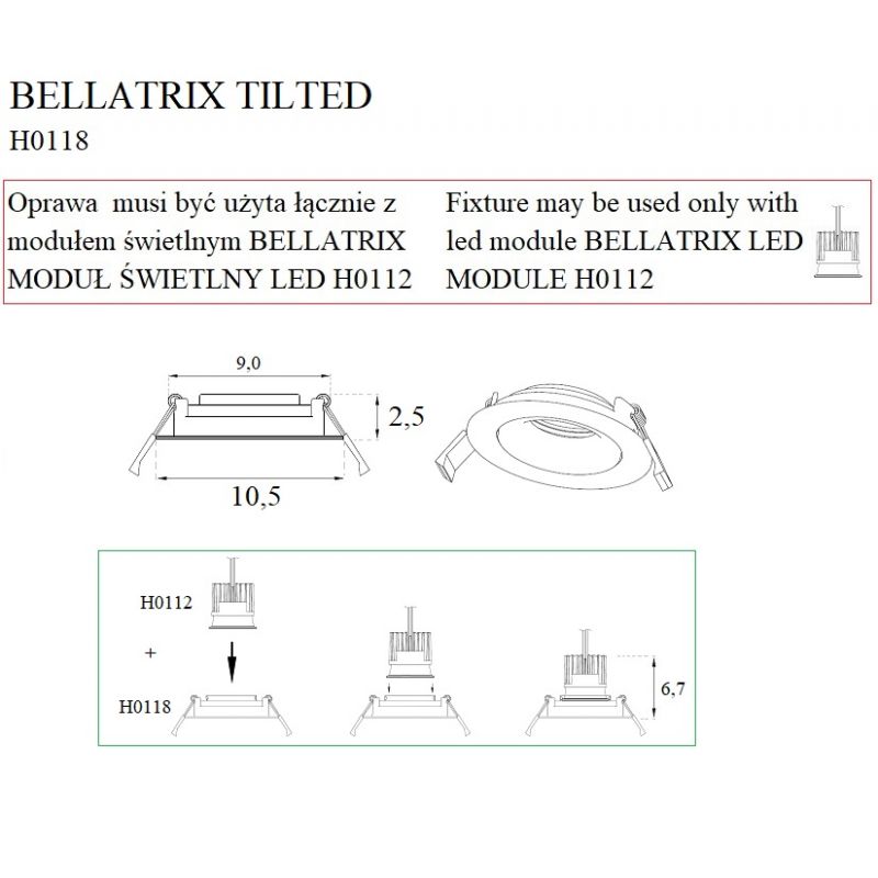 | Informatii produs: | Atentie, doar rama! Modulul LED H0112 se comanda separat! |