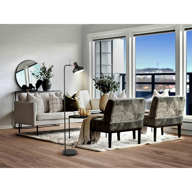 | Materiale | metal negru cu detalii cupru satin, abajur ajustabil |