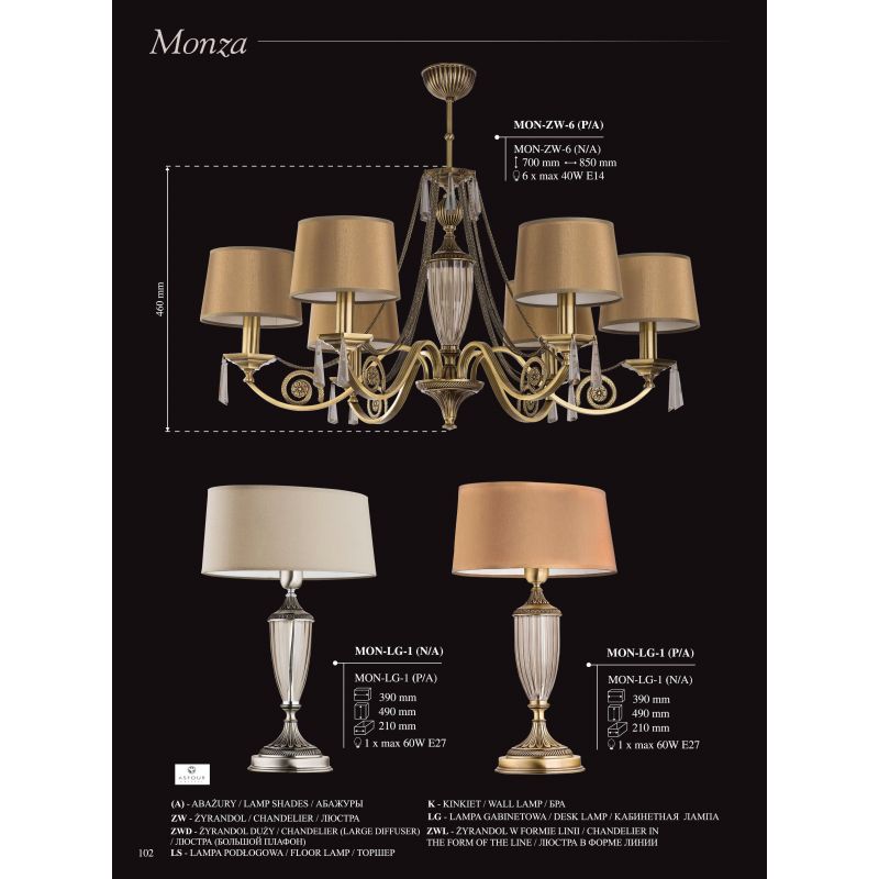 | Descriere | metal alama disponibil in 2 finisaje -alama patinata (P) sau alama finisaj nickel antic (N), cristal Asfour, abajur textil disponibil in diferite finisaje |