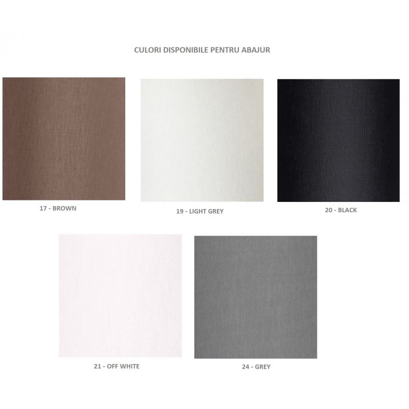 | Informatii produs: | Lampa realizata manual personalizabila (vezi poze secundare). Va rugam specificati finisajul metalului si nr. abajurului in observatiile comenzii sau separat in mailul de confirmare pe care il veti primi de la unul din consultantii nostri. |