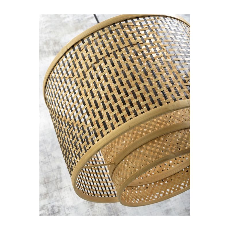 | Descriere | lemn finisaj natur, abajur fâsii de bambus fin tesute manual într-o combinatie de natural si negru, cablu textil, intrerupator pe cablu |