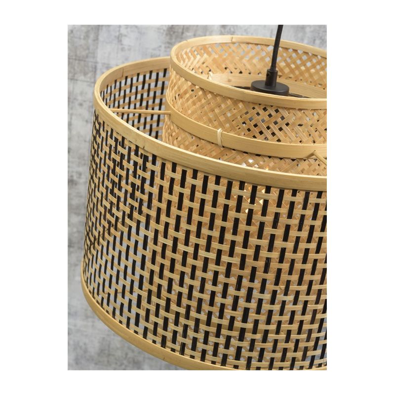 Gama BHUTAN este realizată din benzi de bambus țesute manual, care sunt complet ecologice, contribuind la reducerea impactului asupra mediului și a nivelurilor de poluare. Inspirată de arhitectura himalayană din Bhutan, lustrele adaugă textură și caracter casei tale. Brațul rezistent din bambus are un abajur geometric care cuprinde două abajururi cilindrice care îi îmbunătățesc designul. Nuanța interioară este de culoare naturală și țesută în diagonală, în timp ce nuanța exterioară prezintă o grilă de culoare neagră și naturală.