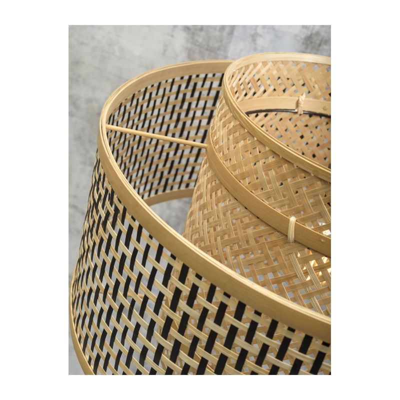| Descriere | lemn finisaj negru, abajur fâsii de bambus fin tesute manual într-o combinatie de natural si negru, cablu textil, intrerupator pe cablu |