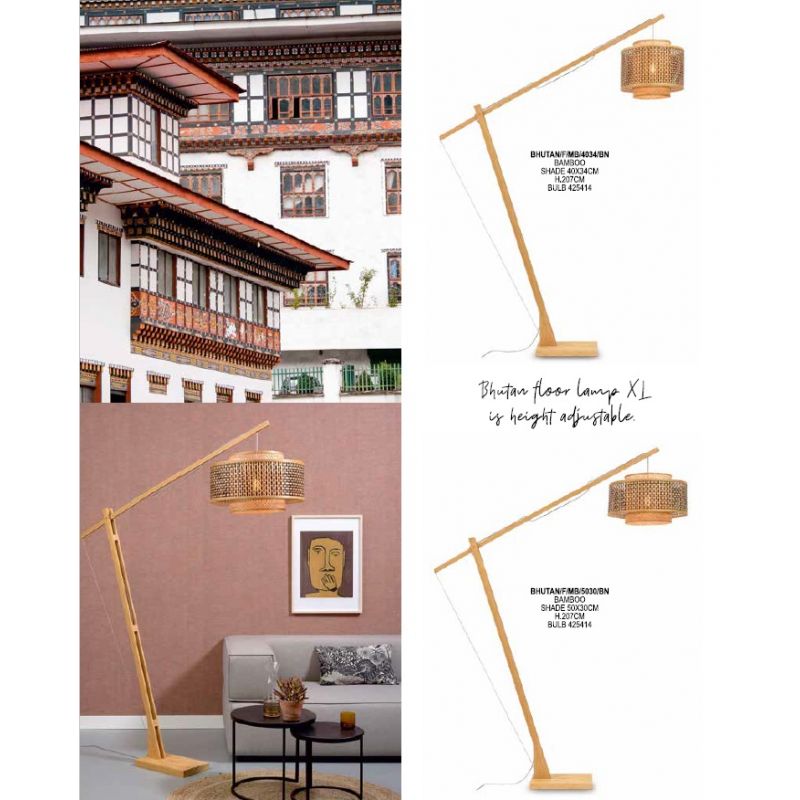 Gama BHUTAN este realizată din benzi de bambus țesute manual, care sunt complet ecologice, contribuind la reducerea impactului asupra mediului și a nivelurilor de poluare. Inspirată de arhitectura himalayană din Bhutan, lustrele adaugă textură și caracter casei tale. Brațul rezistent din bambus are un abajur geometric care cuprinde două abajururi cilindrice care îi îmbunătățesc designul. Nuanța interioară este de culoare naturală și țesută în diagonală, în timp ce nuanța exterioară prezintă o grilă de culoare neagră și naturală.