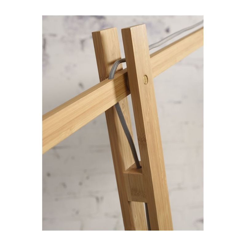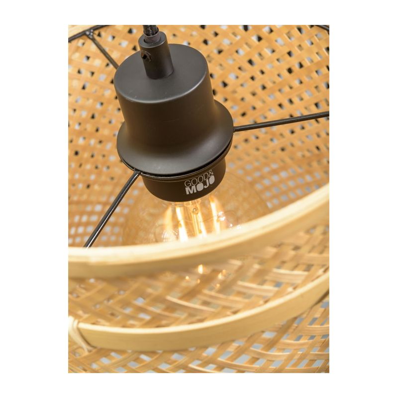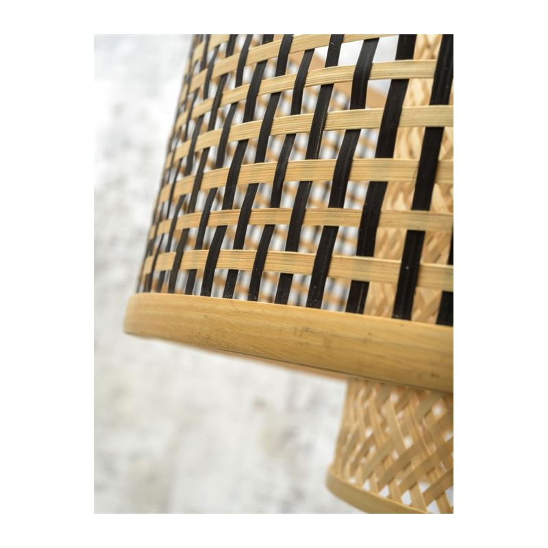 | Descriere | lemn finisaj natur, abajur fâsii de bambus fin tesute manual într-o combinatie de natural si negru, cablu textil, intrerupator pe cablu |