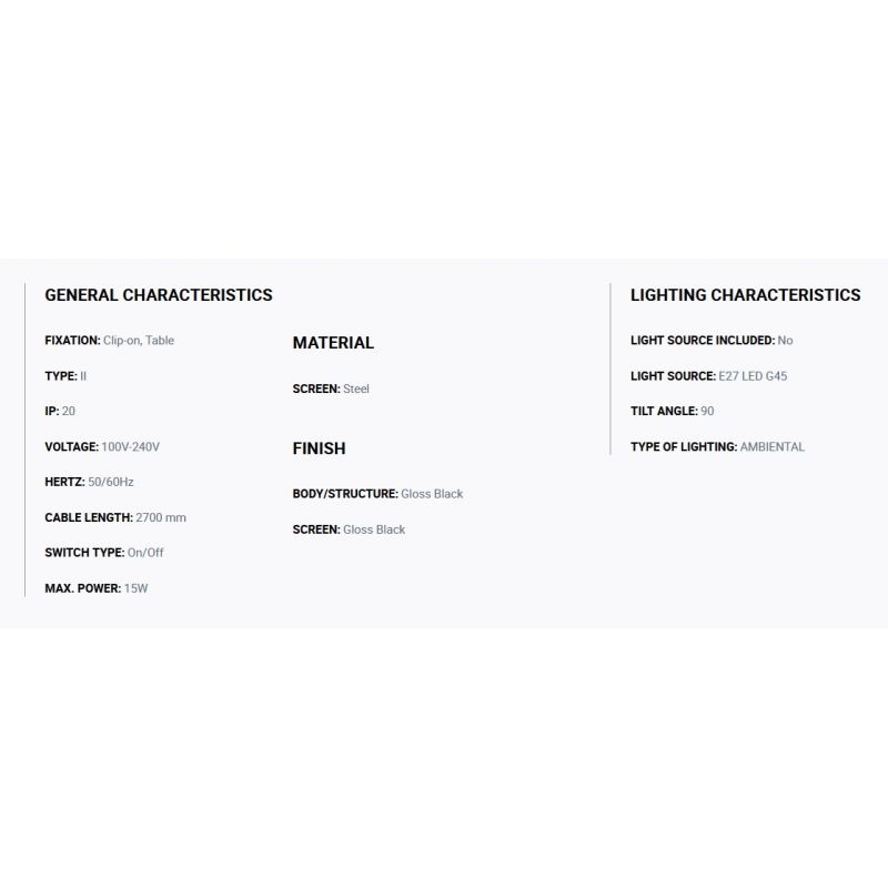 | Materiale | otel negru lucios, baza prindere cu clips, intrerupator On/Off |