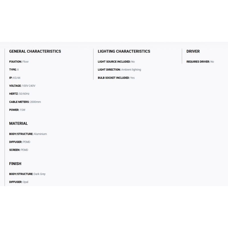 Materiale | aluminiu finisaj gri inchis, difuzor PEMD alb opal |
