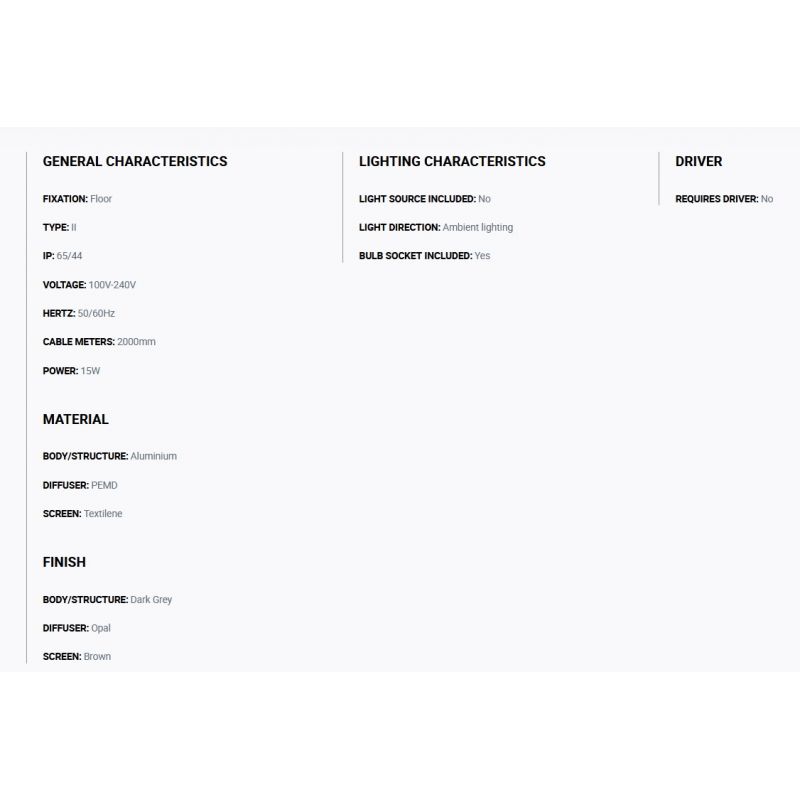 | Materiale | aluminiu finisaj gri inchis, difuzor PEMD alb opal, abajurul din textilen maro (material de înaltă calitate care este foarte rezistent la schimbările de temperatură) |