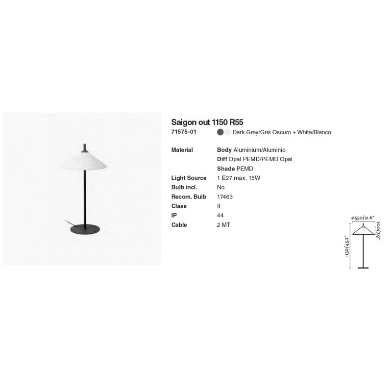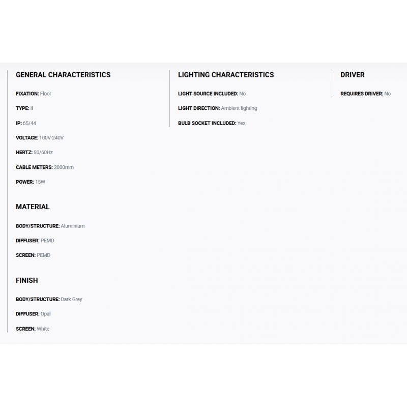 Materiale | aluminiu finisaj gri inchis, difuzor PEMD alb opal, abajurul PEMD alb mat |