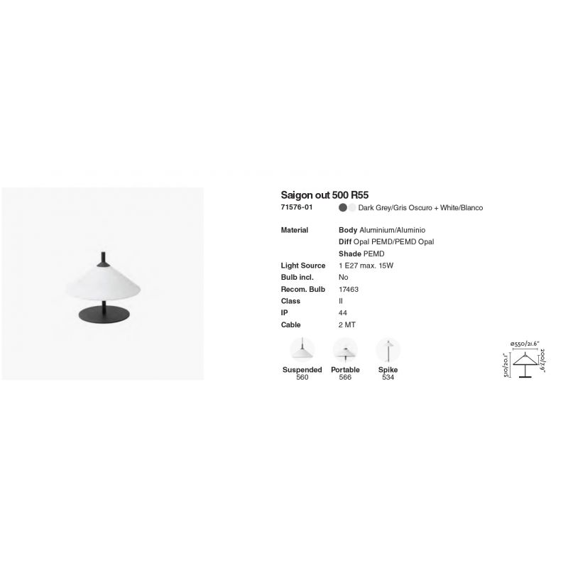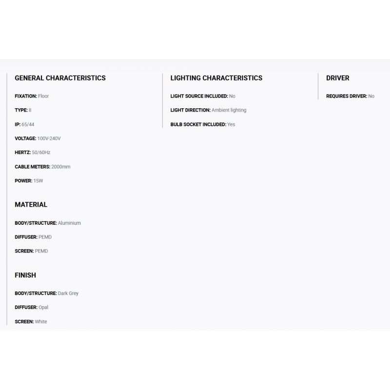Materiale | aluminiu finisaj gri inchis, difuzor PEMD alb opal, abajurul PEMD alb mat |