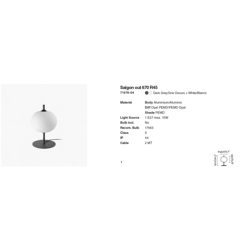| Materiale | aluminiu finisaj gri inchis, difuzor PEMD alb opal, abajurul PEMD alb mat |