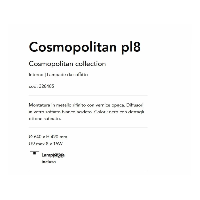 | Materiale | metal negru mat cu detalii finisaj alama satinata, sticlă suflată alba gravată cu acid |