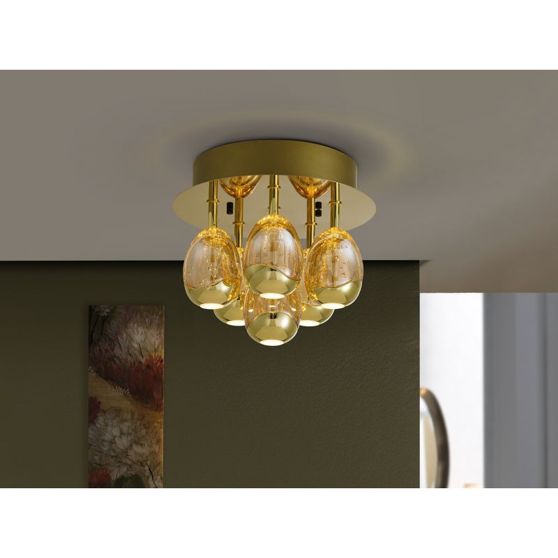 | Materiale | metal finisaj auriu, sticla solida in forma de picatura cu bule decorative in interior, in tonalitate sampanie |