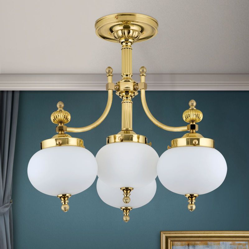 | Materiale | cadru alama solida finisaj alama lucios, abajur de sticla alb opal |