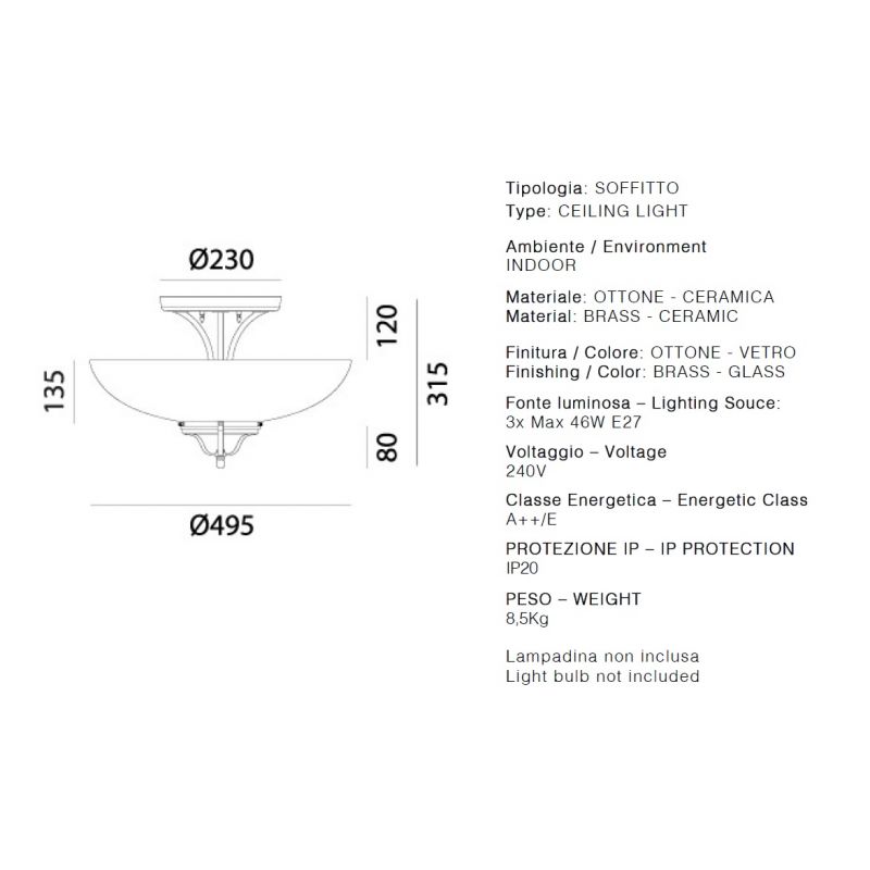| Materiale | plafoniera cu abajur din sticla Murano si cadru din alama antichizata |