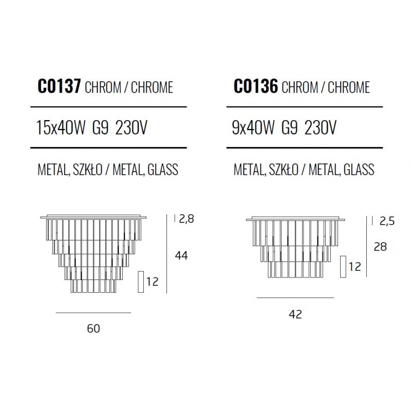 | Materiale | metal finisaj cromat, elemente decorative cristal glass |