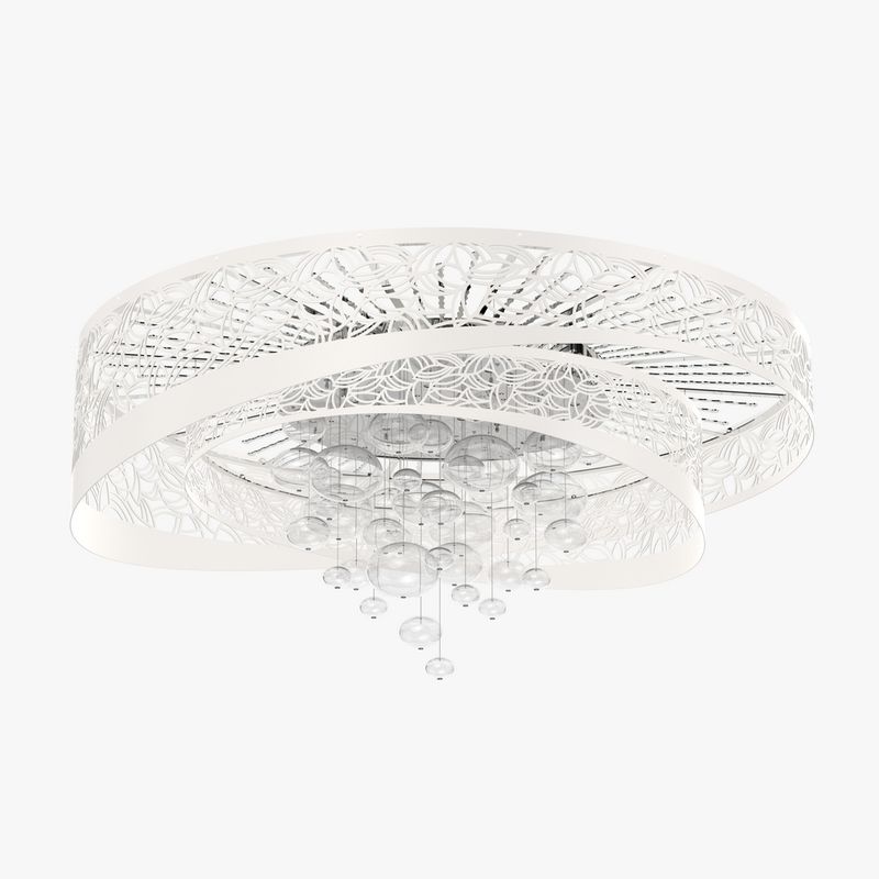 | Descriere | metal perforat disponibil in diferite finisaje, bule din sticla suflata |